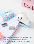 Abrochadora compacta con diseño de conejo, ideal para escritorio, estudio u oficina. Su diseño tierno aporta un toque divertido sin perder funcionalidad. Tamaño liviano, fácil de transportar y usar en cualquier momento.
