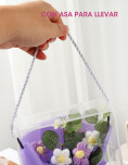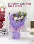 Ramo de flores tejidas. Un detalle único y lleno de encanto: este ramo de flores tejidas a mano estilo crochet viene presentado en una elegante caja transparente con lazo decorativo, listo para regalar y sorprender en cualquier ocasión especial. Sus colores vibrantes y diseño artesanal lo convierten en un obsequio original, ideal para cumpleaños, aniversarios, San Valentín o simplemente para expresar cariño con un detalle que nunca se marchita.