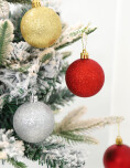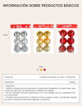Bolas decorativas navideñas, ideal para decorar el árbol o el ambiente. Cada set incluye 3 acabados diferentes: brillante, mate y con glitter, lo que aporta un toque elegante al ambiente.