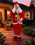 Papá Noel Musical con Saxofón Sorprende a todos esta Navidad con este increíble Papá Noel eléctrico de 1,8 metros de altura. Con su llamativo traje rojo, barba blanca y un saxofón dorado, este adorno no solo decora, ¡sino que también se mueve y toca música navideña! Fabricado con estructura de plástico resistente, es ideal para decorar vidrieras, locales, eventos o el hogar, creando un ambiente festivo único y alegre.