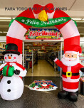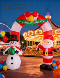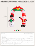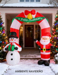 Arco Inflable Navideño con Papá Noel y Muñeco de Nieve Recibí la Navidad a lo grande con este arco inflable de 2,4 metros decorado con Papá Noel, un muñeco de nieve y un cartel que dice ?Feliz Navidad?. Perfecto para entradas de casas, jardines, vidrieras o eventos, es una decoración impactante que crea un ambiente festivo desde el primer momento. Fabricado en poliéster resistente, cuenta con inflado eléctrico fácil y rápido, ideal para uso en interior o exterior.