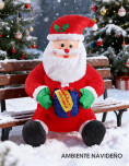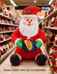 Inflable de Papá Noel. Este simpático de papa noel inflable de 1,2 metros es el complemento perfecto para darle un aire festivo a tu hogar, negocio o evento. Está fabricado en poliéster y tela de alta calidad, resistente y duradero, con diseño colorido y alegre. Viene con su clásico traje rojo, guantes verdes y un regalo en las manos con la frase "Feliz Navidad", ideal para transmitir espíritu navideño.