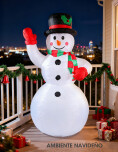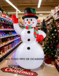 Muñeco de Nieve Inflable Navideño Decora tu hogar con el encanto clásico de la Navidad con este muñeco de nieve inflable de 1,8 metros de altura. Fabricado en resistente poliéster, cuenta con diseño alegre, sombrero de copa, bufanda a cuadros rojos y verdes, y brazos levantados para dar la bienvenida. Ideal para interiores o exteriores, es fácil de instalar gracias a su sistema de inflado rápido y conexión eléctrica. Perfecto para ambientar tu jardín, vidriera o sala de estar con un espíritu festivo y lleno de color.