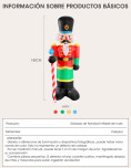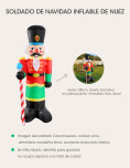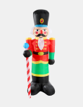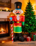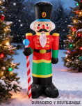 Soldado Cascanueces Inflable. Decora tu Navidad con estilo y originalidad gracias a este imponente Soldado Cascanueces inflable de 1,8 metros. Fabricado en material de poliéster resistente, es ideal para darle un toque festivo a entradas, jardines, vidrieras o espacios interiores. Su diseño colorido y detallado, junto con su gran tamaño, lo convierte en el centro de atención en cualquier ambiente navideño.