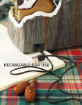 Funciona con USB/3 pilas AA, no vienen incluídas.