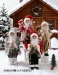 Adorno de papa noel Decorativo. Llena tu hogar de magia navideña con este imponente papa noel decorativo. Su rostro detallado, barba blanca y gafas le dan un aspecto realista y encantador, mientras que su vestimenta de tela con adornos brillantes aporta un toque de elegancia y tradición a tus espacios. Cada modelo viene acompañado de accesorios navideños, como sacos de regalos, ramas decoradas o faroles, lo que lo convierte en la pieza ideal para destacar en la entrada, junto al árbol o como protagonista en tus decoraciones de interior.