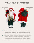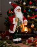 Adorno de papa noel Decorativo. Llena tu hogar de magia navideña con este imponente papa noel decorativo. Su rostro detallado, barba blanca y gafas le dan un aspecto realista y encantador, mientras que su vestimenta de tela con adornos brillantes aporta un toque de elegancia y tradición a tus espacios. Cada modelo viene acompañado de accesorios navideños, como sacos de regalos, ramas decoradas o faroles, lo que lo convierte en la pieza ideal para destacar en la entrada, junto al árbol o como protagonista en tus decoraciones de interior.
