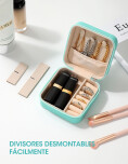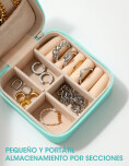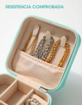 Elegante y funcional, este joyero portátil es perfecto para mantener tus accesorios siempre ordenados y protegidos. Fabricado en cuero sintético con interior aterciopelado, cuenta con varios compartimientos para anillos, aros, pulseras y cadenas. Su tamaño compacto lo hace ideal para viajes o para guardar en la cartera. Diseño con cierre seguro Divisiones internas ajustables Ideal para anillos, aros, cadenas y pulseras