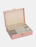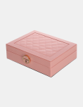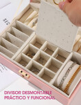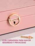 Alhajero de cuerina con cierre metálico para proteger tus accesorios. Cuenta con varios compartimentos internos para organizar diferentes tipos de joyas.