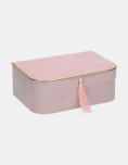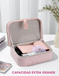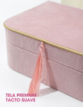 Alhajero de acabado suave, de diseño simple y elegante, ideal para guardar collares, pulseras, anillos y accesorios pequeños. El interior amplio facilita la organización de joyas, mientras que su estilo discreto le hace perfecto para el uso diario o para colocar sobre tocadores y mesas de noche.