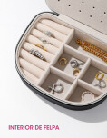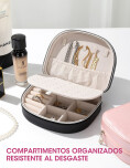 Alhajero organizador, ideal para guardar anillos, aritos, collares y otros accesorios pequeños. Cuenta con un diseño compacto y elegante, con amplio espacio que permite mantener las joyas ordenadas y protegidas. Práctico y funcional, es una excelente opción tanto para uso diario como para llevar en viajes.