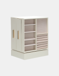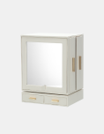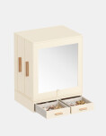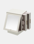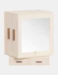 Organizador de maquillaje con espejo, ideal para mantener cosméticos, accesorios y artículos de cuidado personal bien ordenados. Cuenta con puerta con espejo, estantes internos y divisiones especiales que facilitan la organización. Su estructura firme permite un uso cómodo sobre mesas o tocadores, combinando funcionalidad y estilo.