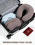 Almohada cervical con antifaz, ideal para descansar mejor durante viajes o momentos de relajación. La almohada brinda un soporte cómodo al cuello, mientras que el antifaz ayuda a bloquear la luz para un descanso más profundo.