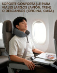 Almohada de viaje en forma de U, diseñada para brindar un apoyo cómodo y estable al cuello y la cabeza. Su estructura ayuda a mantener una postura correcta y reduce la presión cervical. Ideal para usar en avión, tren, auto, oficina o en casa.