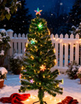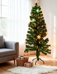 Árbol de Navidad de 1.5 M con fibra óptica. Combina 160 luces en tonos cálidos, creando un brillo suave y festivo. Incluye 20 accesorios plásticos decorativos para complementar la ambientación. Base resistente y enchufe plano tipo 8 con transformador, listo para usar y fácil de instalar en salas, oficinas o vitrinas.