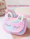 Carteras Infantiles de Peluche con Diseño Fantasía Añadí un toque mágico a los looks de las más pequeñas con estas encantadoras carteras de peluche. Con diseños de unicornio y gatito, orejitas brillantes y detalles en glitter, son el accesorio perfecto para combinar ternura, diversión y estilo. Suaves al tacto y con correa ajustable, resultan cómodas y prácticas para que las niñas lleven sus pequeños tesoros a todas partes.