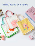 Bolso Tote Infantil Kawaii. Dale un toque tierno y divertido a tu día con este bolso tote con estampados de dibujos animados. Hecho en lona resistente, combina asa de mano y correa ajustable para que lo uses como cartera, bolso de hombro o bandolera.