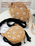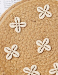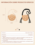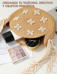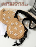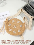 Bolso pequeño de estilo simple y natural con decoración floral, que le aportan un toque veraniego. Su diseño redondo y liviano lo convierte en una accesorio cómodo y llamativo, ideal para salidas, vacaciones o outfits relajados en verano.