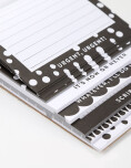 Set de block de notas con diseño minimalista en blanco y negro, ideal para dejar recordatorios o organizar tareas. Perfecto para usar en la oficina o en casa.