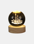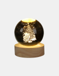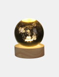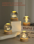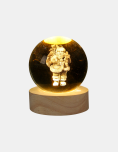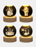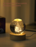 Bola de cristal navideña. Iluminá tu hogar esta Navidad con estas elegantes bolas de cristal con luz LED. Cada esfera cuenta con un diseño 3D grabado en su interior como Santa, árboles o velas que brilla con una luz cálida y envolvente al encenderse. Su base de madera natural le da un toque sofisticado y moderno, ideal para decorar mesas, escritorios o rincones festivos. Funciona mediante conexión USB, práctica y segura.