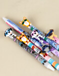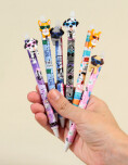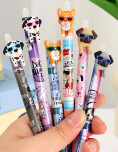 El botón de presión tiene una figura de perrito con gafas, y el cuerpo de la lapicera viene con diferentes estampados divertidos. Su tinta gel es suave al escribir y puede borrarse fácilmente con la goma integrada.