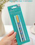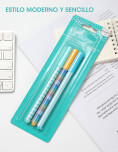 Set de 3 bolígrafos de tinta negra, con diseño moderno, ideal para quienes buscan escribir con comodidad sin dejar de lado el estilo. Su cuerpo liviano permite un manejo práctico y cómodo, perfecto para llevar en cartuchera o mochila.