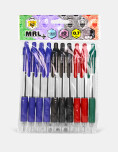 Pack de bolígrafos retráctiles con cuerpo plateado y clip de color. Incluye tinta azul, negra, roja y verde. Su escritura es suave, continua y de secado rápido, ideal para uso diario en oficina, escuela o hogar.