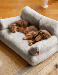 Cama tipo sofá para mascotas, ideal para brindar mayor comodidad y descanso a perros y gatos. Su diseño acolchado ofrece soporte y confort, creando un espacio cálido y seguro.