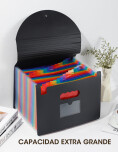 Carpeta organizadora tipo acordeón, ideal para mantener documentos ordenados y protegidos de forma práctica y eficiente. Su diseño expandible con 24 bolsillos permite clasificar los papeles por categorías, facilitando el acceso rápido a cada archivo. Fabricada en plástico resistente, es liviana, flexible e impermeable, perfecta para el uso diario en la oficina, el estudio o el hogar.