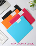 Carpeta con folios, práctica y funcional, diseñada para el uso diario en estudio u oficina. Su diseño simple y resistente permite mantener documentos ordenados y protegidos de forma eficiente.