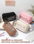Cartuchera práctica y funcional, ideal para el uso diario en estudio u oficina. Su frente transparente permite identificar rápidamente el contenido, facilitando la organización. Cuenta con un diseño amplio y multicapa, con tres cierres independientes, que brindan mayor capacidad y permiten organizar los útiles por secciones de forma ordenada y accesible.