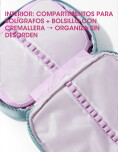 Cartuchera amplio y práctico, ideal para organizar útiles escolares o artículos de uso diario. Su diseño moderno y colorido lo convierte en una opción atractiva para estudiantes y amantes de la papelería. Cuenta con un interior espacioso con compartimentos para mantener bolígrafos, lápices y otros accesorios ordenados. Su cierre resistente permite abrir y cerrar con facilidad, y la cartucehra incluye un llavero decorativo que aporta un detalle decorativo.