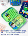 Cartuchera con diseño 3D, colorido y atractivo, ideal para niños y estudiantes. Su estilo divertido lo convierte en un producto llamativo para el uso diario en la escuela. Cuenta con un interior amplio con compartimentos y separadores que permiten organizar lápices, bolígrafos y otros útiles escolares de forma práctica. Su material resistente ayuda a mantener la forma del estuche y protege los útiles en su interior.
