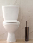 Cepillo de inodoro con soporte de diseño moderno y minimalista, sus cerdas fabricadas en material resistente, permite una limpieza profunda del inodoro. Su forma cilíndrica y delgada permite mantener el baño ordenado y limpio sin ocupar mucho espacio. Ideal para uso diario, combina funcionalidad con una estética elegante que se adapta a distintos estilos de baño.