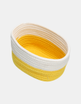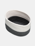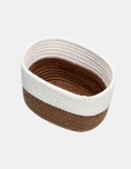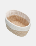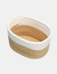 Cesto ovalado, minimalista y funcional, ideal para organizar juguetes o accesorios. Material resistente y colores combinados que decoran cualquier espacio.
