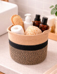 Cesto bicolor, práctico y decorativo, ideal para mantener cualquier espacio ordenado.