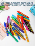 Set de 24 crayones, estimulan la creatividad y la imaginación de los niños, ideales para dibujo, coloreado y actividades artísticas. Su textura suave y colores vivos permiten una experiencia de uso cómodo y divertido.