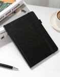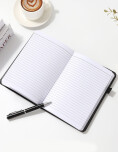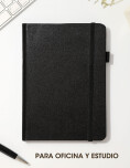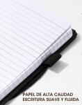 Cuaderno cosido con tapa dura. Cuenta con 80 hojas rayadas. Diseño clásico en color negro, con banda elástica para mantenerlo bien cerrado. Ideal para llevar en mochila y usar para estudio, trabajo o notas diarias.