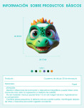 Cuaderno de dibujo infantil con diseño de dinosaurio y hojas en blanco, diseñado para que los niños puedan dibujar, pintar libremente. Su formato práctico y liviano lo hace ideal para estimular la creatividad tanto en casa como al aire libre.