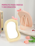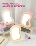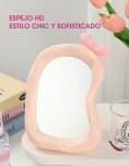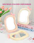 Espejo de maquillaje con diseño irregular Agregá un toque moderno y original a tu tocador con este espejo de maquillaje de forma irregular. Fabricado en plástico con acabado tipo goma mate, combina estilo y funcionalidad. Su diseño curvo y orgánico aporta un aire decorativo único, ideal para dormitorios, baños o escritorios. Cuenta con soporte trasero para colocarlo fácilmente sobre cualquier superficie.