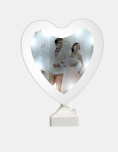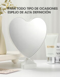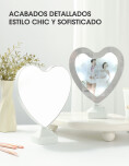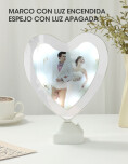 Espejo con luz LED y marco corazón 2 en 1. Un accesorio encantador y multifuncional para tu tocador o mesa. Este espejo con forma de corazón funciona también como marco de fotos iluminado, ideal para decorar y dar un toque romántico a tu espacio. Cuenta con luz LED integrada que se enciende al conectarse mediante cable USB, brindando una iluminación suave perfecta para maquillarte o resaltar tu foto favorita. Fabricado en plástico resistente con acabado moderno, combina estilo y practicidad en un solo producto. Alimentación por USB.