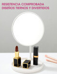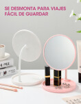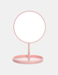 Espejo de mesa con diseño limpio y minimalista . Cuenta con base redonda estable que permite guardar accesorios. Perfecto para maquillaje o skincare.