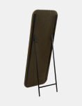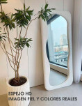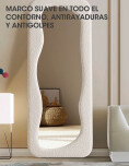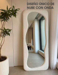 Espejo de cuerpo entero con marco de felpa suave, ideal para decorar dormitorios o vestidores. Incluye soporte firme para colocarlo de pie en el piso con estabilidad.