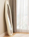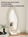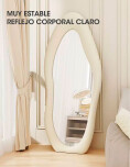 Espejo de cuerpo entero con marco de felpa suave, ideal para decorar dormitorios o vestidores. Incluye soporte firme para colocarlo de pie en el piso con estabilidad.