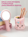 Set de espejo de mano + portalápices con diseño de animalito. El espejo es ligero y fácil de sostener, ideal para llevarlo en la mochila. El portalápices puede añadir un toque dulce al escritorio. Perfecto para uso personal o regalo.