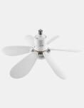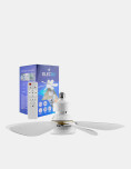 Ventilador de techo moderno con iluminación integrada, ideal para dormitorios, livings y espacios medianos. Ofrece ventilación eficiente y luz regulable para crear un ambiente perfecto.