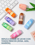Goma de borrar con diseño de cajita de leche, divertida y funcional, ideal para agregar un toque original y adorable a la cartuchera o escritorio.