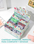 Goma de borrar con diseño de pelotas, ideal para acompañar el estudio diario con un toque original. Combina funcionalidad y decoración, perfecta para estudiantes.
