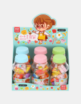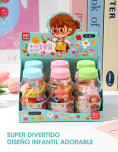 Se vende por paquete cerrado de 6 botellita. Cada botellita contiene 18 gomitas de borrar.