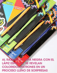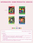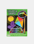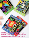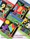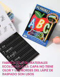 Libro con hojas para raspar que relevan colores y diseños ocultos. Incluye lápiz especial y actividades educativas que combinan juego y aprendizaje.